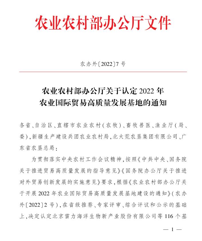 標(biāo)題:祝賀:我區(qū)5家企業(yè)被認(rèn)定為2022年度農(nóng)業(yè)國(guó)際貿(mào)易高質(zhì)量發(fā)展基地