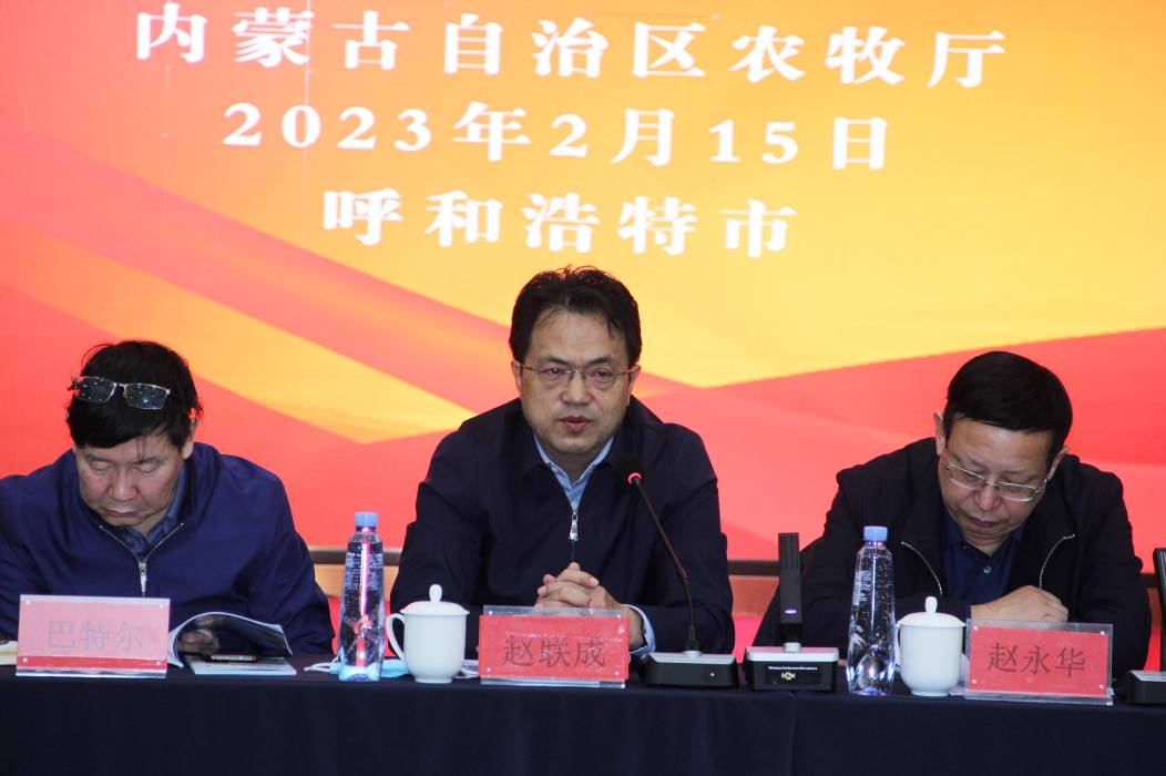 協(xié)會(huì)山東辦事處王智、上海辦事處張國賢、陜西辦事處張子旸、廣西辦事處馮付葉、大連辦事處步海民,海南省冷鏈物流協(xié)會(huì)王鴻駿,內(nèi)蒙古北京商會(huì)會(huì)長水恩海,山東水發(fā)農(nóng)業(yè)集團(tuán)劉朝陽等8家異地商協(xié)會(huì)和投資企業(yè)負(fù)責(zé)人,盛健生物、蘭格格乳業(yè)、羊羊牧業(yè)、額爾敦羊業(yè)、東黎羊絨、北平紡織、蒙清農(nóng)業(yè)、華歐淀粉、薯元康生物、薯旺食品公司、宇航人、蒙伊薩等12家區(qū)內(nèi)重點(diǎn)龍頭企業(yè)等單位負(fù)責(zé)人,緊扣要農(nóng)產(chǎn)品生產(chǎn)基地建設(shè)任務(wù),圍繞如何助力內(nèi)蒙古農(nóng)牧業(yè)高質(zhì)量發(fā)展、投資意向、重點(diǎn)項(xiàng)目建設(shè)推進(jìn)、牌建設(shè)、內(nèi)蒙古農(nóng)畜產(chǎn)品走出去等問題,同自治區(qū)農(nóng)牧廳領(lǐng)導(dǎo)及產(chǎn)業(yè)鏈和招商引資責(zé)任處室:市場與對(duì)外合作處、鄉(xiāng)村產(chǎn)業(yè)發(fā)展處、奶業(yè)處、畜牧局、種植業(yè)管理處、自治區(qū)農(nóng)牧廳技術(shù)推廣中心畜牧業(yè)技術(shù)處負(fù)責(zé)人進(jìn)行了深入交流。會(huì)議一致認(rèn)為,各商協(xié)會(huì)要以黨的二十大精神為指引,在自治區(qū)農(nóng)牧廳等部門的指導(dǎo)下,充分發(fā)揮橋梁紐帶作用,積極宣傳推介自治區(qū)農(nóng)牧業(yè)相關(guān)產(chǎn)業(yè)政策,始終把招商引資工作當(dāng)作一項(xiàng)重要的責(zé)任、當(dāng)作大事來抓,切實(shí)保障優(yōu)化營商環(huán)境和招商引資工作的連續(xù)性和實(shí)效性。