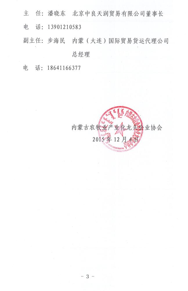 關(guān)于成立內(nèi)蒙古農(nóng)牧業(yè)產(chǎn)業(yè)化龍頭企業(yè)協(xié)會(huì)大連辦事處的通知