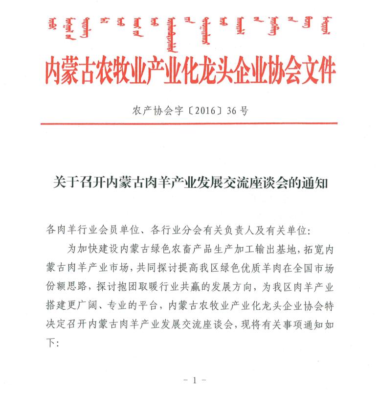 關于召開內(nèi)蒙古肉羊產(chǎn)業(yè)發(fā)展交流座談會的通知