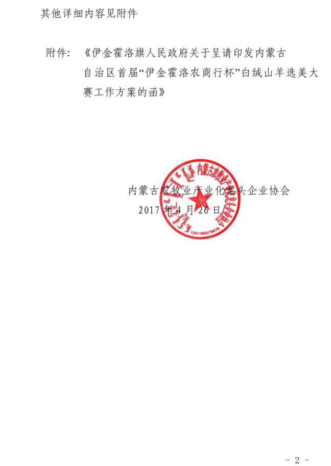 關(guān)于召開(kāi)內(nèi)蒙古首屆“伊金霍洛農(nóng)商行杯”白絨山羊選美大賽的通知
