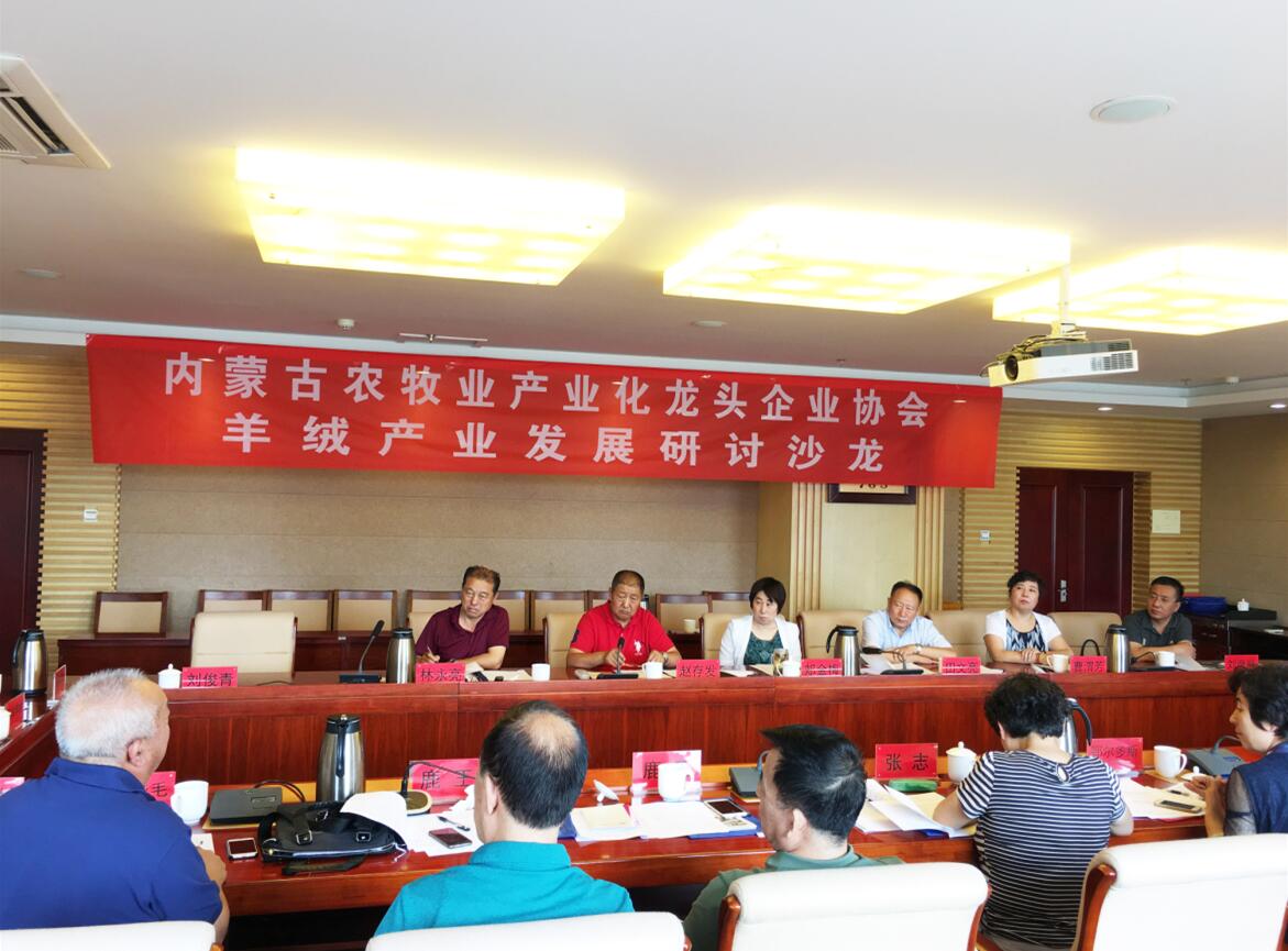2017年727,內(nèi)蒙古農(nóng)牧業(yè)產(chǎn)業(yè)化龍頭企業(yè)協(xié)會受羊絨產(chǎn)業(yè)分會委托舉辦的內(nèi)蒙古羊絨產(chǎn)業(yè)發(fā)展研討沙龍在呼和浩特如期舉辦,內(nèi)蒙古自治區(qū)農(nóng)牧業(yè)廳產(chǎn)業(yè)化處副處長郟金梅、專家?guī)斐蓡T高級經(jīng)濟(jì)師林永亮、內(nèi)蒙古自治區(qū)農(nóng)牧業(yè)科學(xué)院首席專家趙存發(fā)、內(nèi)蒙古自治區(qū)纖維檢驗局總工程師田文亮、內(nèi)蒙古自治區(qū)纖維檢驗局總工程師曹渭芳、內(nèi)蒙古品牌促進(jìn)會會長劉彥辰應(yīng)邀出席會議,出席會議的還有協(xié)會副會長單位、羊絨分會會長單位-內(nèi)蒙古鄂爾多斯羊絨集團(tuán)總工程師張志、質(zhì)量管理部部長朱虹、原料分公司總經(jīng)理李豐,協(xié)會副會長單位、內(nèi)蒙古鹿王羊絨有限公司董事長鄭浩生、副總裁袁文勇,協(xié)會副會長單位、赤峰東黎絨毛制品有限公司董事長程旭東,協(xié)會副會長單位、內(nèi)蒙古北平紡織有限責(zé)任公司總裁冀北平,協(xié)會副會長單位、內(nèi)蒙古大盛業(yè)羊絨制品有限公司總經(jīng)理魯耀武等共計23人,李豐總經(jīng)理主持會議。會議主要圍繞協(xié)會團(tuán)體標(biāo)準(zhǔn)-內(nèi)蒙古白山羊絨的編制修訂意見、羔山羊絨定義及認(rèn)證管理制度編制、羊絨企業(yè)使用“內(nèi)蒙古羊絨產(chǎn)地證書”的方案、聯(lián)合出展和促進(jìn)內(nèi)蒙古羊絨產(chǎn)業(yè)發(fā)展分析五大主題進(jìn)行討論。