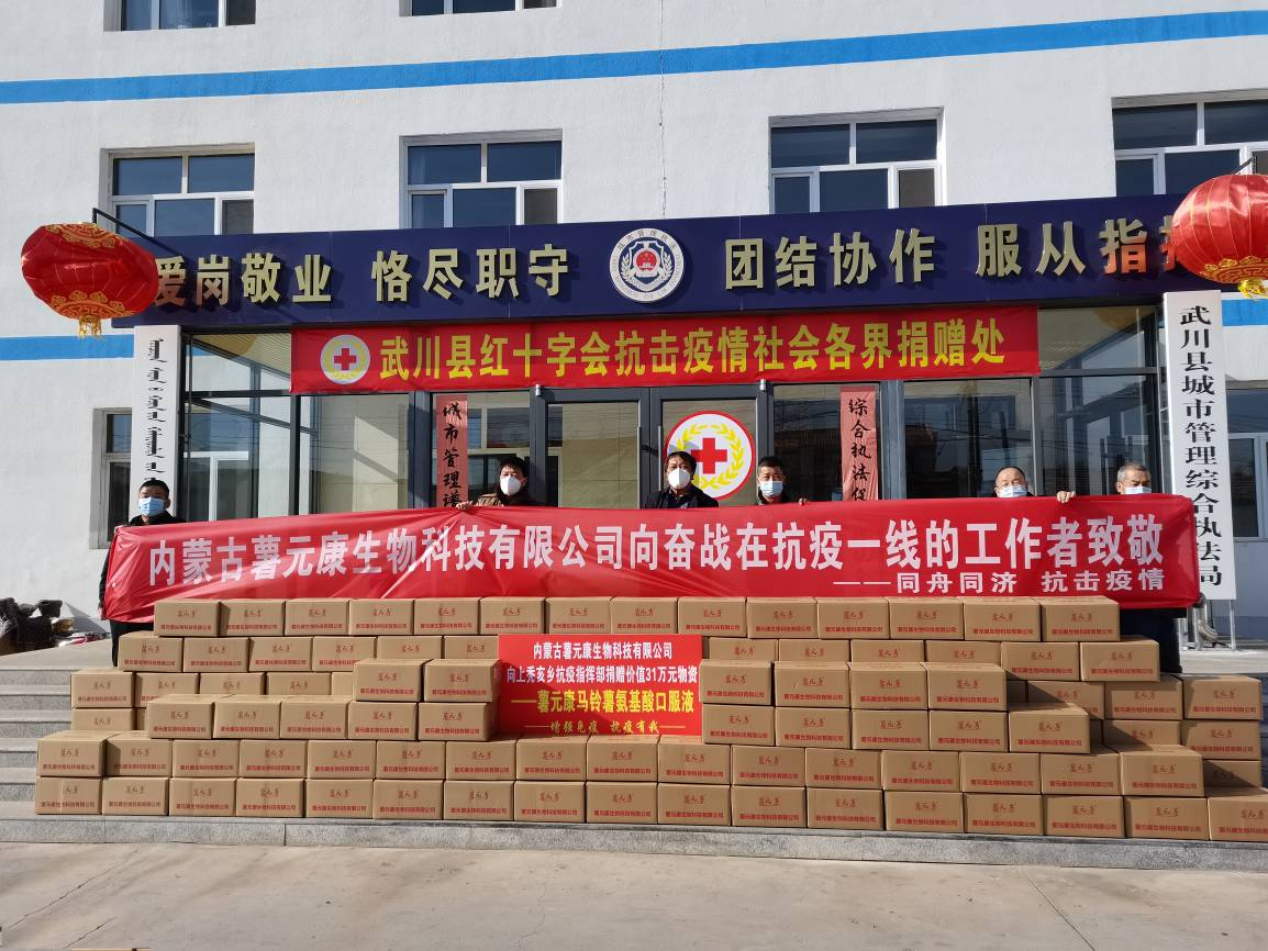 22、會(huì)員單位-內(nèi)蒙古薯元康生物科技有限公司:2022年2月27日,內(nèi)蒙古薯元康生物科技有限公司為武川縣紅十字會(huì)捐贈(zèng)價(jià)值人民幣叁拾壹萬(wàn)零拾元整的抗疫物質(zhì)。