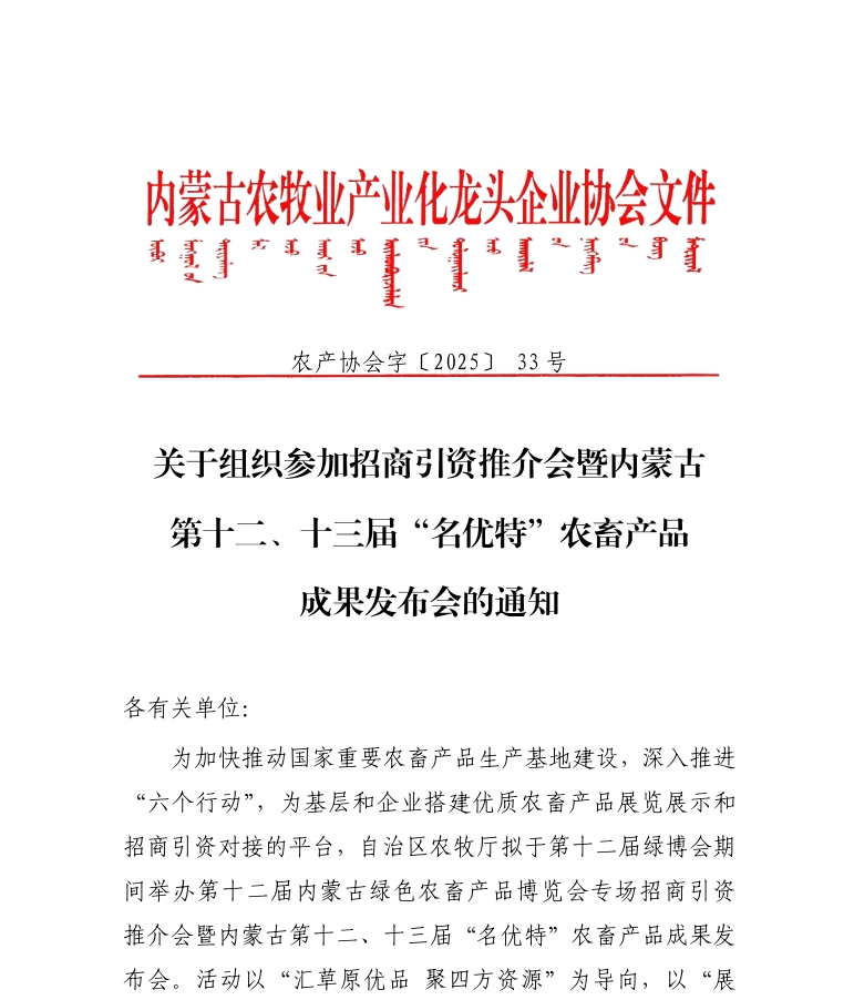 16  關(guān)于召開內(nèi)蒙古農(nóng)牧業(yè)產(chǎn)業(yè)化龍頭...