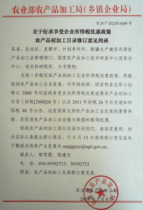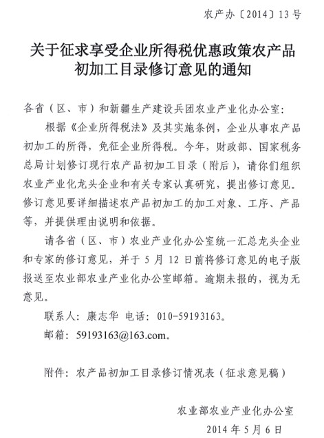 關于向會員單位征集農(nóng)產(chǎn)品初加工目錄修訂意見的通知