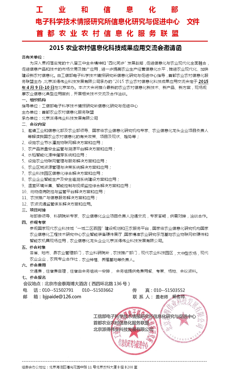 關于組織會員企業(yè)參加2015農(nóng)業(yè)農(nóng)村信息化科技成果應用交流會的通知