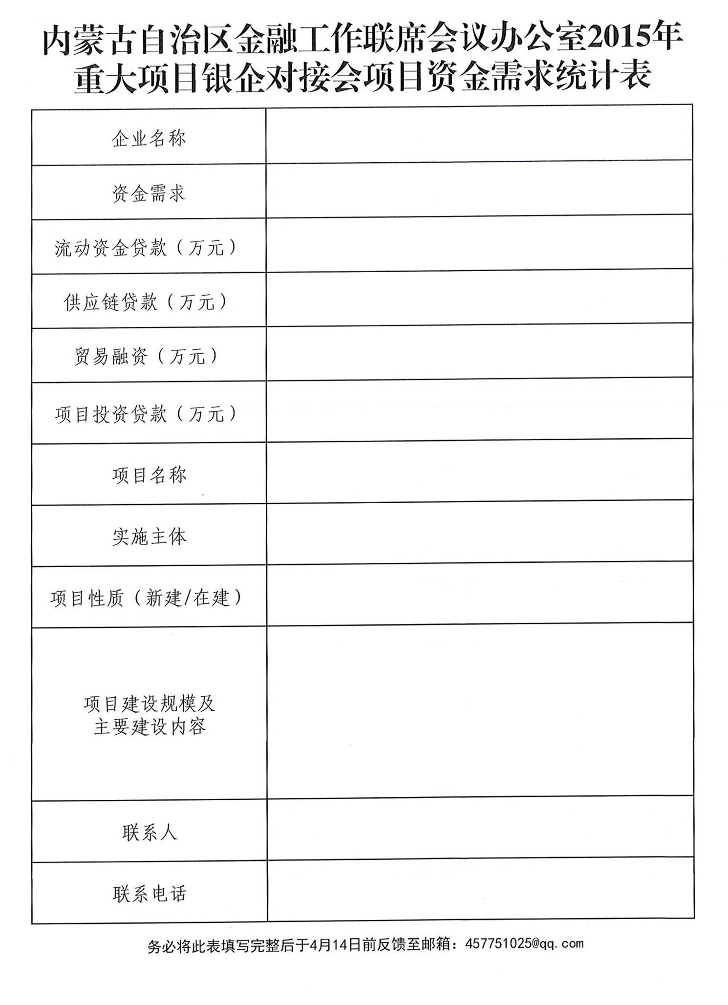 關于征集企業(yè)重大項目資金需求的通知