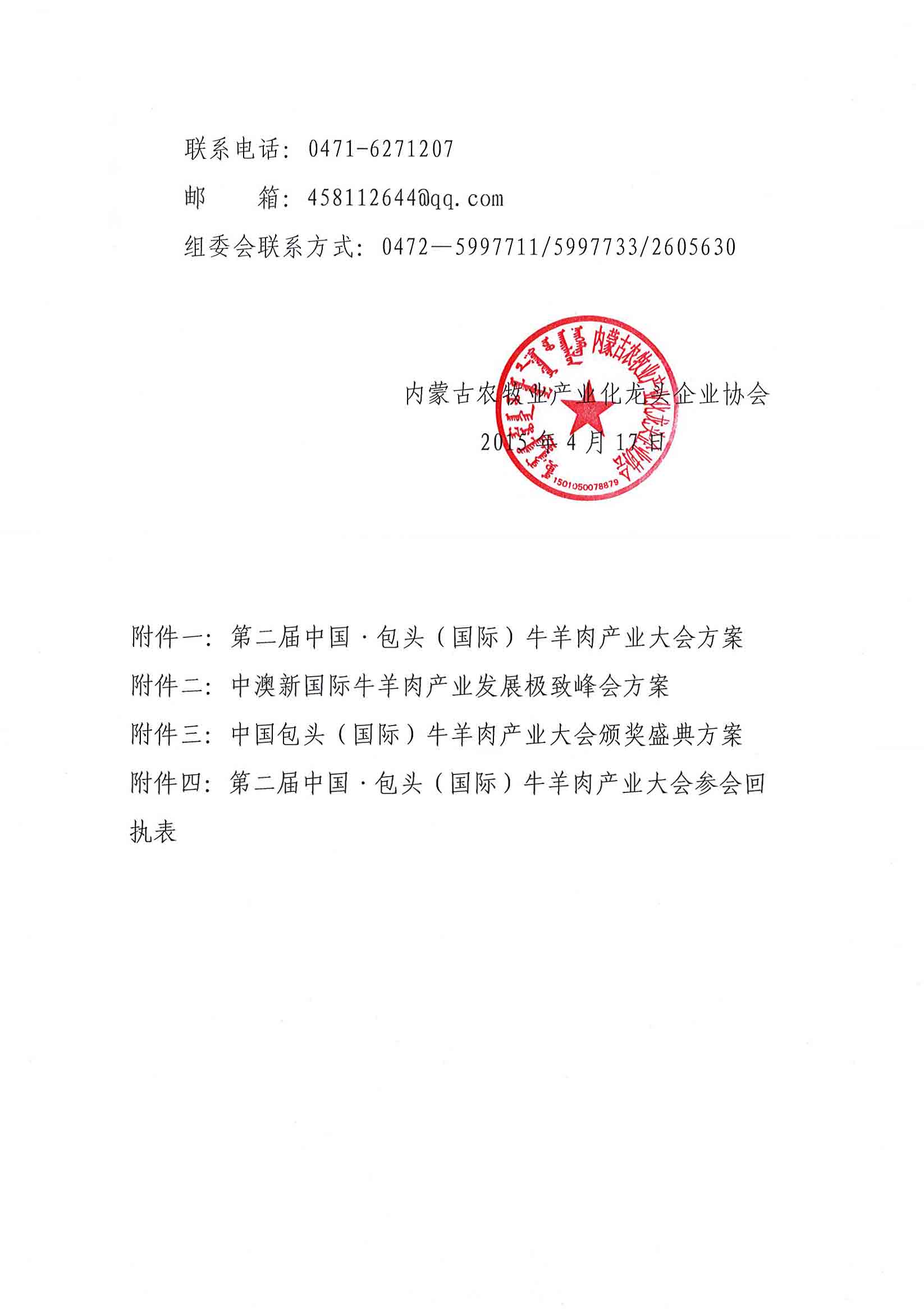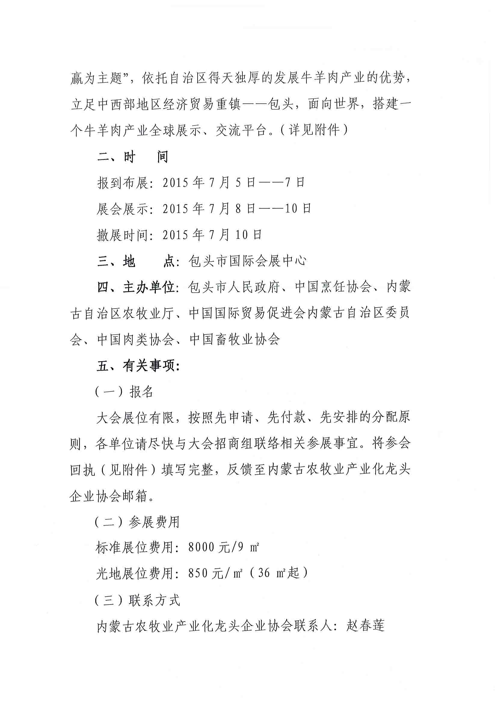 關(guān)于組織會(huì)員企業(yè)參加第二屆中國·包頭(國際)牛羊肉產(chǎn)業(yè)大會(huì)的通知
