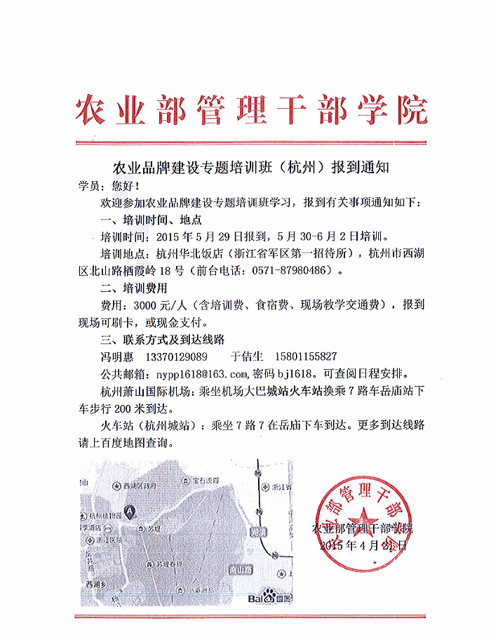 關于組織參加農業(yè)品牌建設專題培訓班的通知