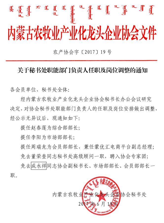 關(guān)于秘書處職能部門負責(zé)人任職及崗位調(diào)整的通知