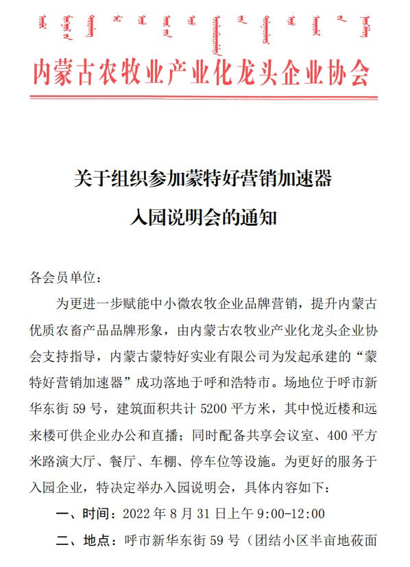 關于組織參加蒙特好營銷加速器入園說明會的通知