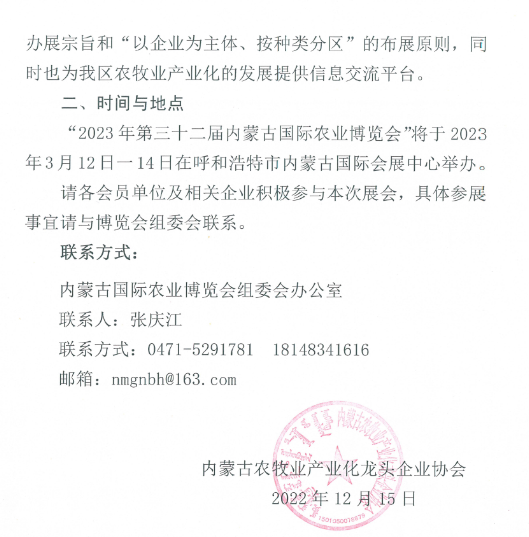 關(guān)于組織參加2023年第三十二屆內(nèi)蒙古國際農(nóng)業(yè)博覽會(huì)的通知